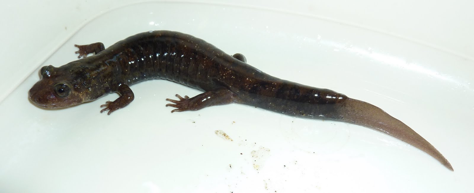 They weren’t the only snakes we saw yesterday. Sadly, after parking my truck in his yard after the biking, we found this colorful little red-bellied snake (Storeria occipitomaculata obscura) dying in the tire tread print. This species (subspecies) is pretty common, but hides and forages under rocks, logs and leaf litter and thus is seldom seen. Some of their behavioral quirks are fascinating: